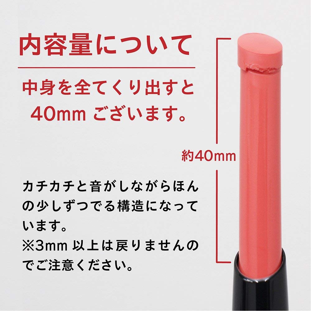 ●やわらかい口紅を保護するため、3mm以上くり出すと戻らない構造となっていますので、出しすぎにご注意ください。